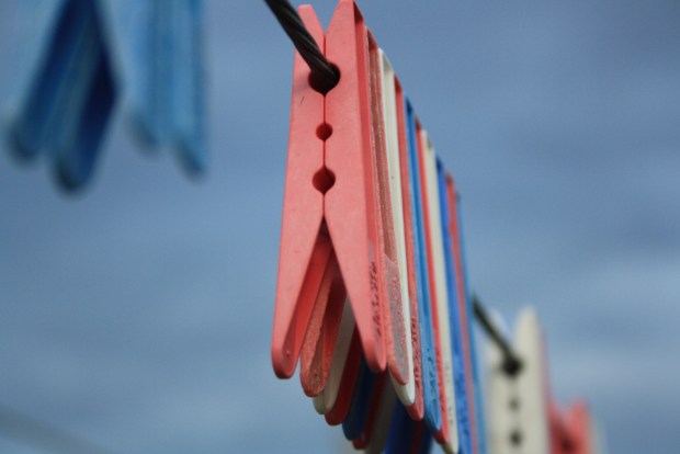 Pegs on a clothesline