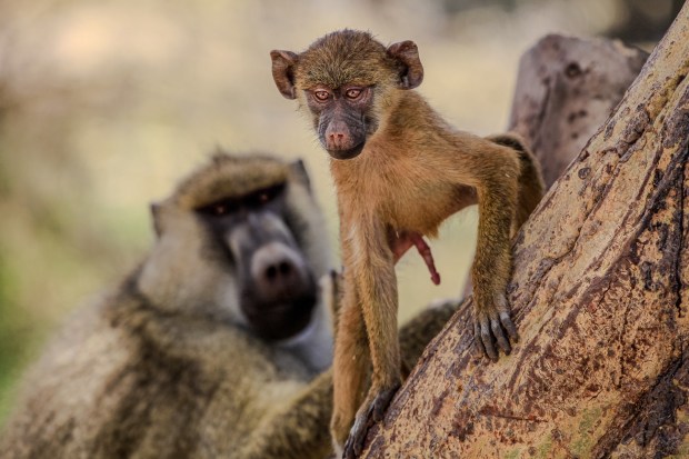 Here is a small baboon with his larger father, taken in Serengiti National Park in Tanzania. I used a Canon EOS 5D MII camera with a Canon EF 70-300mm f/4-5.6L IS USM lens. Settings were 1/250s, f5.6 ISO 200, at a focal length of 300mm.