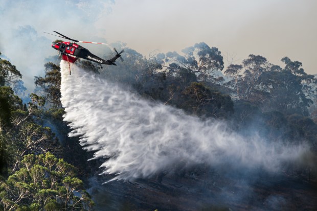 Aerotech Blackhawk dropping water on fires in Harcourt during Victorian bushfires on the second week of January.