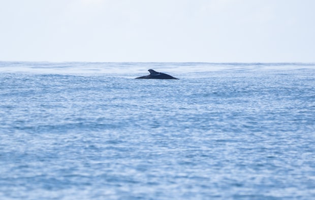 A Humpback whale makes its journey down the east coast of Australia and is seen here on the horizon with just its upper body visible