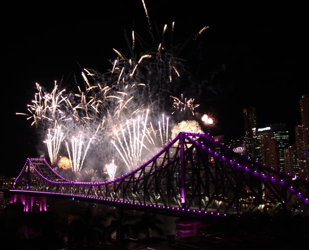The Storey Bridge comes alight once a year for Brisbane's Riverfire