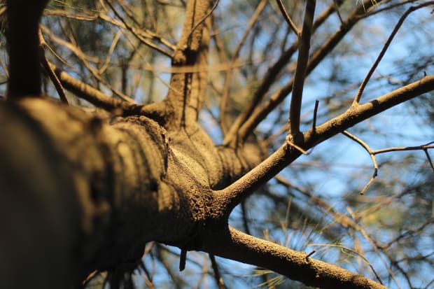 Rachelle Salvadora, First light lands on a tree - worm's-eye view (January theme: First light)