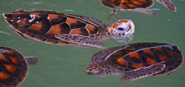 This photograph was taken at the Sea Turtle Conservation Center, Taplamu, Thailand in 2023. The baby turtles spend their day practicing swimming in pools. Eventually, they will be released into the ocean.