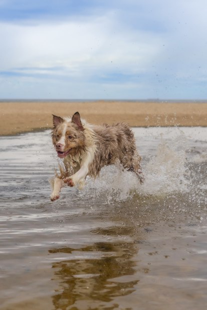 This shot was taken in the summer at the beach to capture the joy on my dog's face, as he leaps through his favourite place, the water - with each bound scattering ripples and droplets across the surface. It serves as a quiet reminder of the small joys that connect us to the world around us.