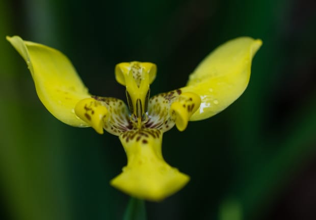 A tiny yellow flower in close up.