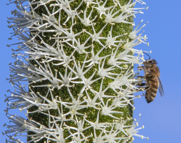 Pat Martin, Flowering Xanthorrhoea spike with bee (May theme: Trees and Plants)