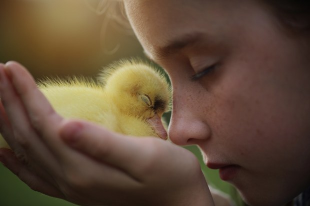 My daughter with one of our baby ducks egg.