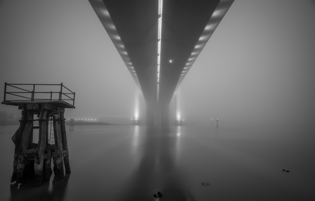 A crisp and still morning under the Bolte Bridge prior to the fog lifting.