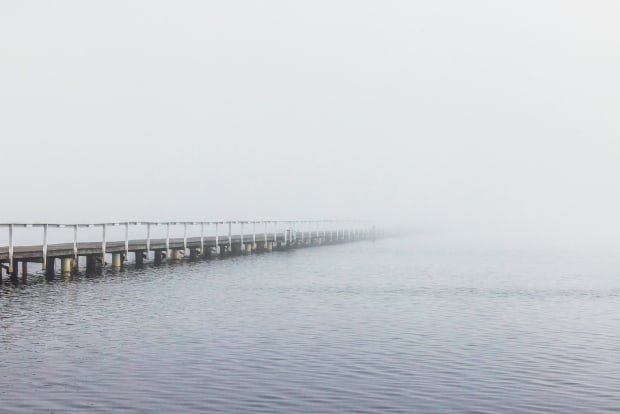 Foggy morning at long jetty wharf. It was that foggy you could not see the end of the wharf.