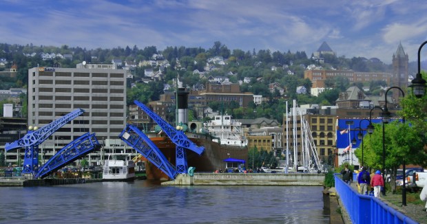 The walking Bridge has a new coat of paintat Canel Park Duluth Minnesota Un ited States