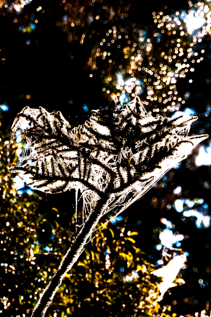 Early winter morning light through a frozen spider's web
