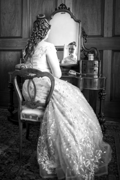 I love black and white images - they show detail and set a mood well. This image is a reflection of the belle of the ball getting ready for her debut. This is one in a series of photos.