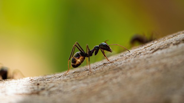 Macro shot of a backlit ant climbing a tree in the Northern Territory.