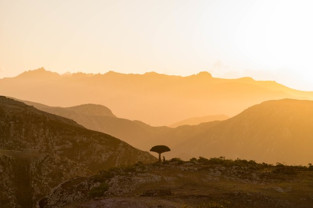 The lone dragon blood tree at sunrise. I hiked out of camp at about 4am to catch this sunrise, the light was quite harsh but it pushed a golden light across the valleys and mountains, which also silhouetted the lone dragon blood tree.