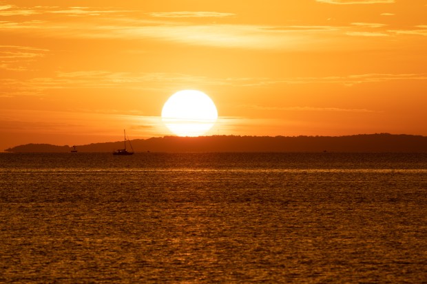 Early morning golden light that changes the landscape over Moreton Bay in Manly Queensland.