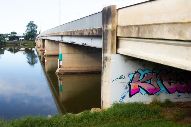 Traveling up or down (depending where from) the Australian south coast, you'll cross many a bridge. This one caught my eye at Moruya, NSW.