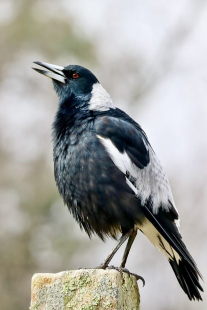A magpie perches solemnly atop a sandstone headstone, embodying a quiet, watchful presence.