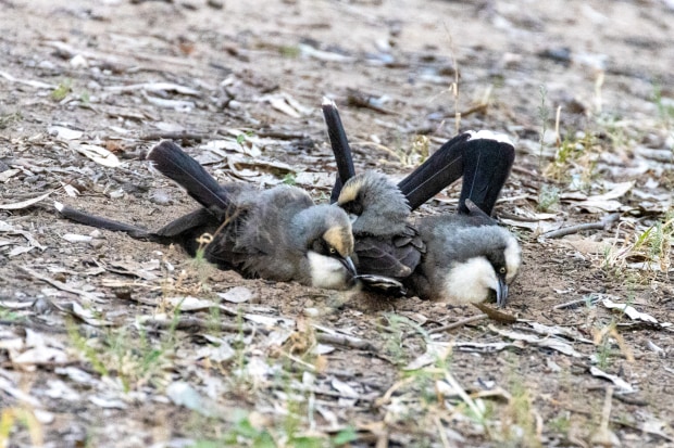 Several Grey-crowned Babblers having a dust bath. Canon 90D, f6.3, 1/250 sec, ISO 6400.