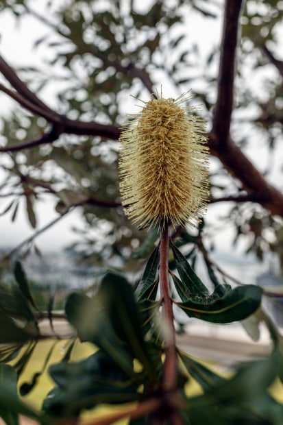 Some much needed rain adds zest to this native Australian Banksia in full bloom.