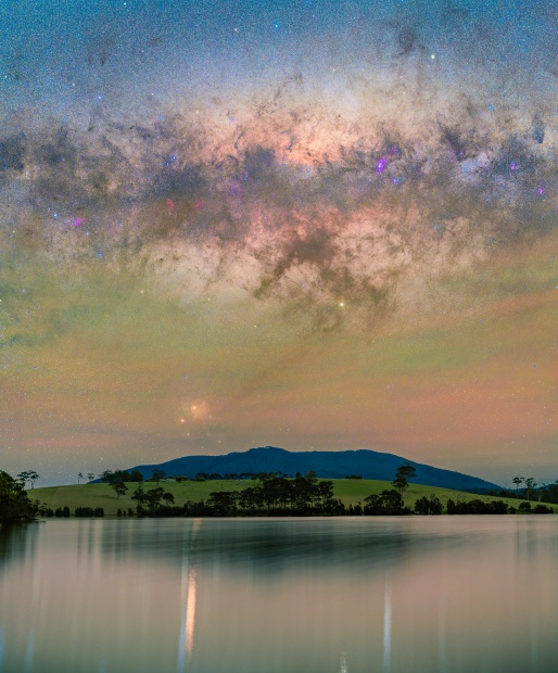 Mother Gulaga dominates the Tilba region of the South Coast, and exudes power and energy. I have photographed her from many angles, with many foregrounds, and this is my favourite. Corunna Lake sparkles beneath the galactic centre. Airglow ripples in the sky. EXIF Sky: 121s f2.5 ISO 1600 Foreground shot: 179s f1.8 ISO 2000 Sigma 50mm f1.4 ART Nikon D750 Sky Watcher Star Adventurer