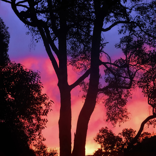Pat Martin, Gum trees at sunset (May theme: Trees and Plants)
