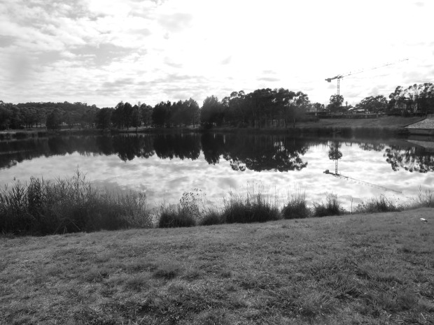 A landscpae shot of my local Gumtrees by the lake with nice shadow and cloud reflecting over the lake and similar