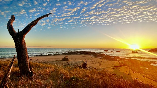 Hervey Bay sunrise with a wonderful dead tree striking a celebratory pose