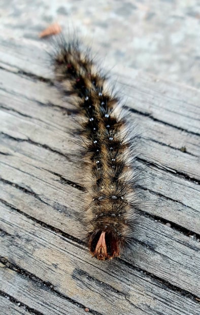 Caterpillar crawling along the ground.