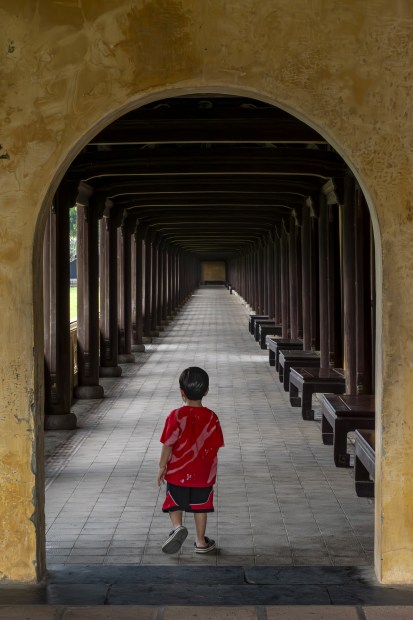 I patiently waited for this archway to clear of tourists to take a photograph of the open air hallway. Just as my moment arrived and I prepared to press the shutter button, this little boy ran into the frame and unknowingly completed the shot! Nikon D5600 1/200 @ f16 ISO 640