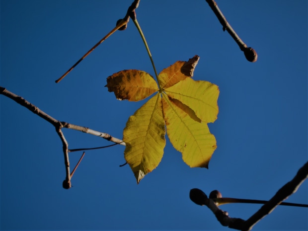 The tree had one autumn leaf left