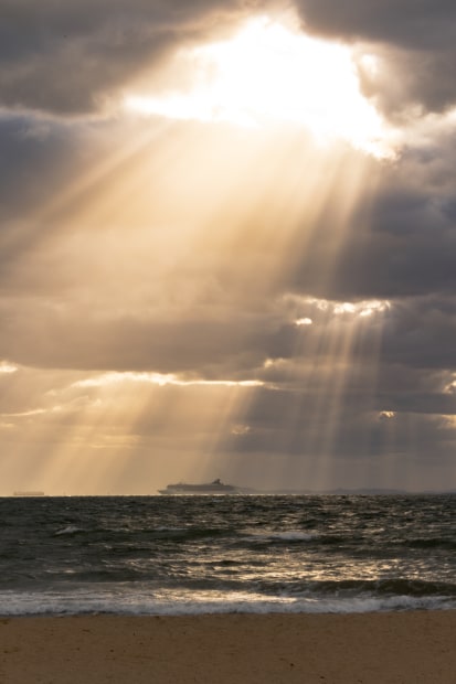 A strong sunbeam on a cruiseship on middle of the ocean