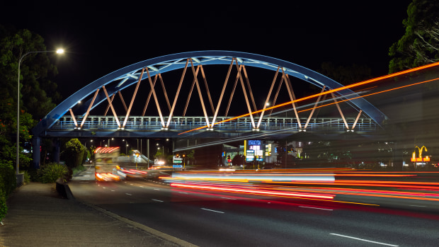 A long exposure of moving highway traffic taken on the Pacific Hwy crossing of the north coast railway line in Coffs Harbour