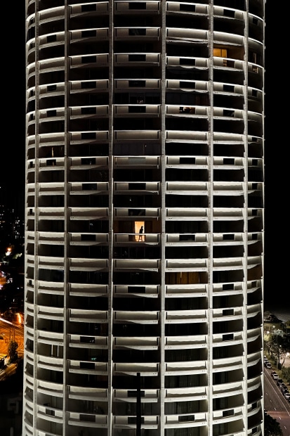 A capture of a silhouette in a doorway of the Focus Building at Surfers Paradise. The rest of the building was largely in darkness.