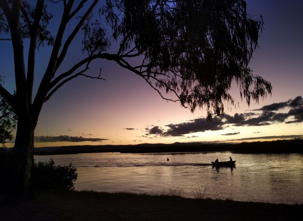 After a day out on the water fishing, at last light, this boat is homeward bound.