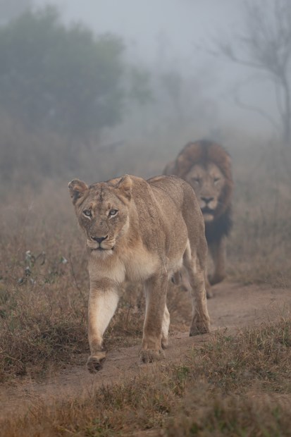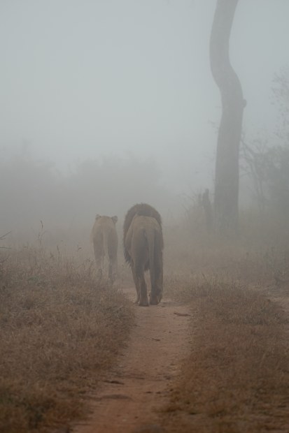 As the mist lay unfaltering in the early morning African wilderness, I watched as two newlyweds joined each other and walked right by my lens.