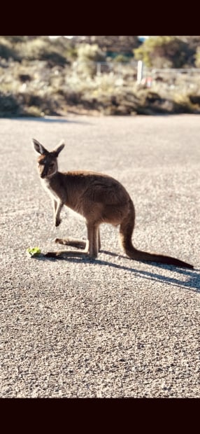 On my three month holiday in W.A. We were going for a walk in our campsite and we found a kangaroo
