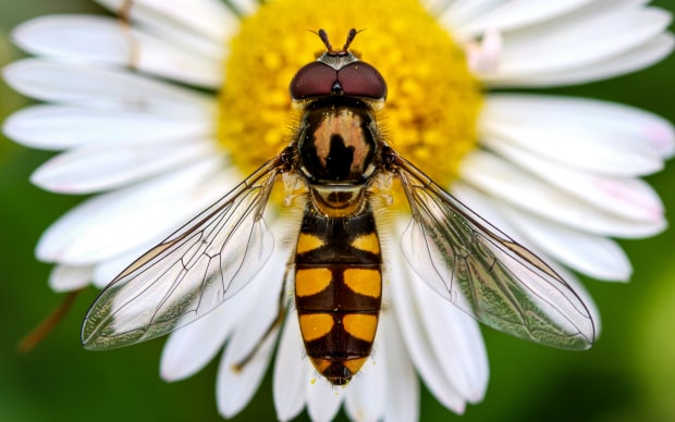 After numerous attempts, I finally captured this hoverfly on a Mexican fleabane flower just the way I wanted it to be.