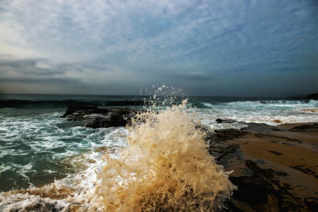 Defines the Water into photography. beautiful early morning before the sun shines surround Newcastle beaches