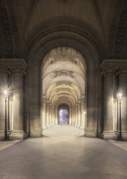 As evening falls and the night lights illuminate the stunning architecture of the Musee du Louvre, these magnificent archways beckon to all who pass by. Musee du Louvre - Paris – France.