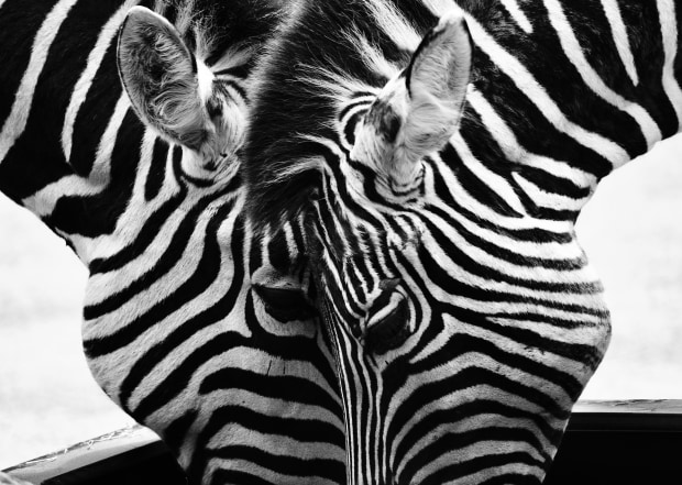 When you are in love, you tend to do everything together like these two Zebras displaying beautiful leading lines into the hay they are sharing. It almost creates an illusion but there are two faces sharing the same pot.