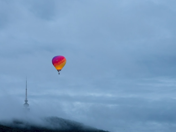 Hot air balloon lit by gas flame