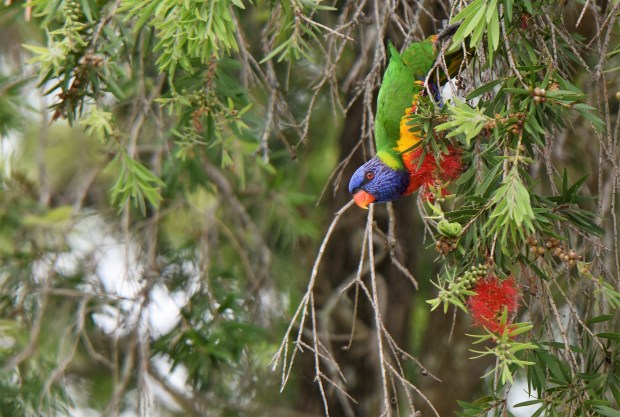 While sitting in the garden watching the birds eat.