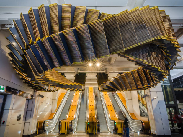 At the busy Wynyard station, the old wooden escalators got a new life as a work of art.