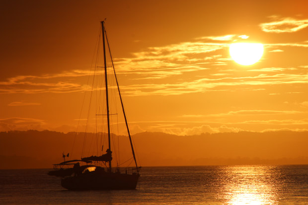 Sunset from the beach looking out from the Cowes Yacht Club Phillip Island