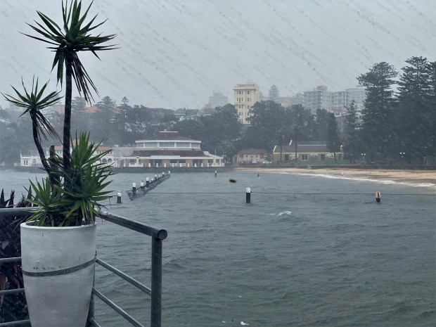 A lunch date in Manly was accompanied by torrential rains and winds , tried to capture the weather was hard