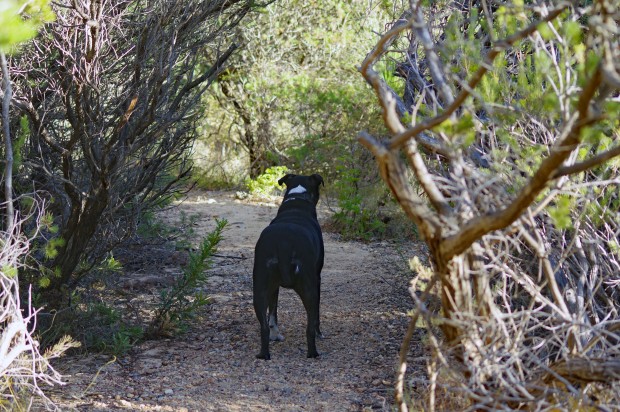 While taking my Dog (Skye) for her morning walk. At times she likes to do her own thing to entertain herself and do her own thing.