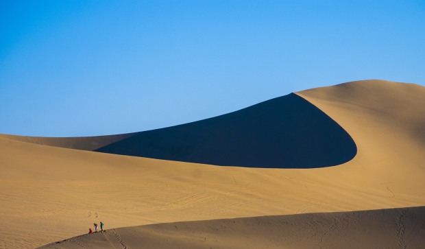 The shape formed by the dunes is reflective of the title but so are the boys in the bottom left corner who delayed their slide down the dunes.