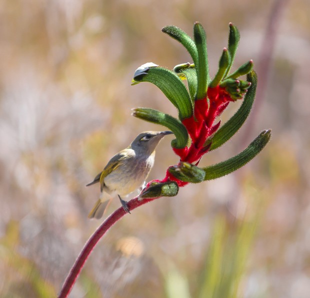 Pat Martin, Kangaroo Paw with Honeyeater (May theme: Trees and Plants)
