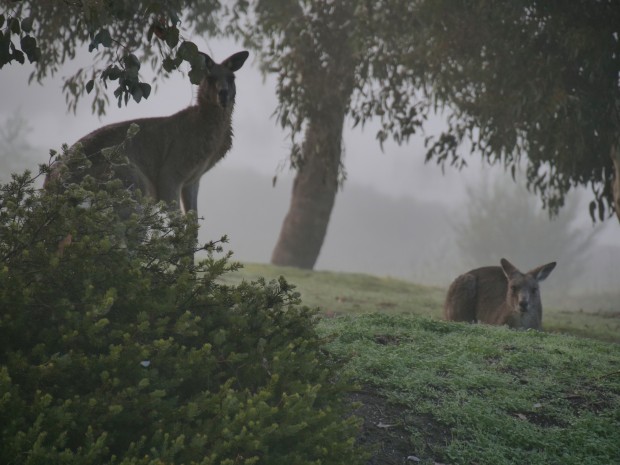 kangaroo drinking in puddle iso 1250 ex time 1/100sec 130mm focal length kangaroo growling iso200 1/80sec 81mm kangaroo in fog peek a boo 1/320 iso320 130mm kangaroo fighting 180sec iso 200 81mm