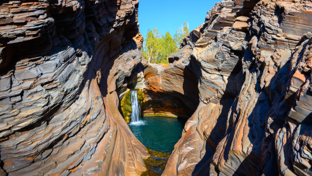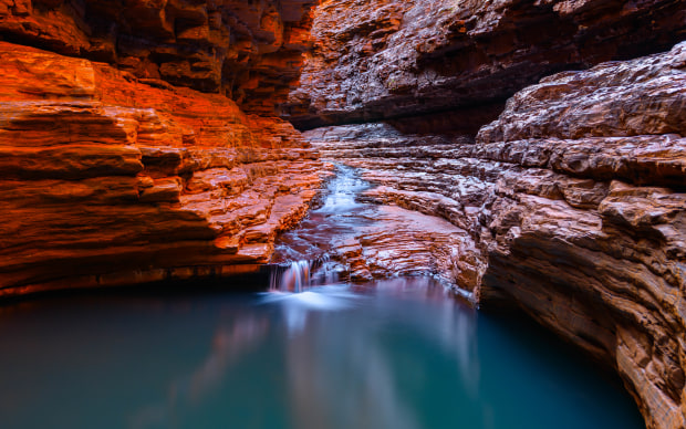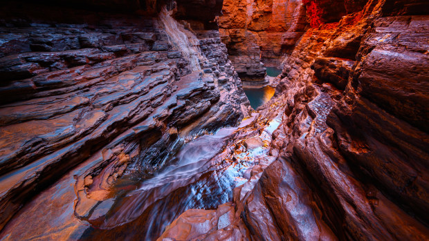 The amazing colours and rock formations of Hancock Gorge and Hamersley Gorge at Karijini National Park.